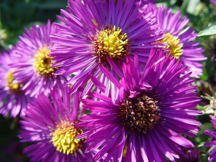 Рассада астры "Марина Волконская" (Marina Wolkonsky) разрастается в довольно высокий кустарник высотой до 120 см. Прямые, высокие, сильноветвистые стебли заканчиваются красивыми, не махровыми, темно-фиолетовыми цветками с очень темным центром. Благодаря им растение выглядит очень эффектно даже в одиночных посадках. Цветение обильное и продолжительное. Бутоны раскрываются в августе, опадают цветочки лишь с первыми заморозками. Высаживают рассаду астры "Марина Волконская" на хорошо освещенные участки. Сорт морозоустойчив.