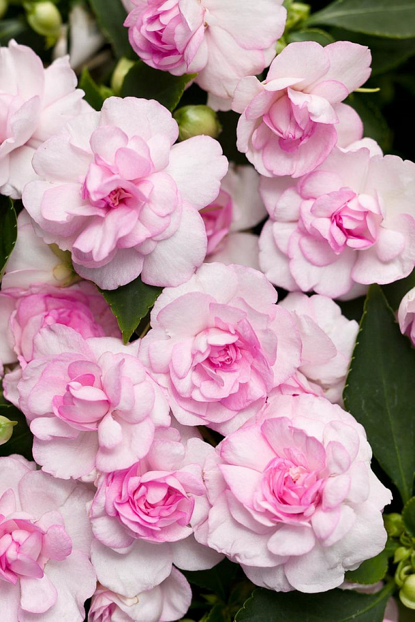 Бальзамин махровый "Афина Эппелблоссом" - это изысканное растение с нежно-розовыми цветками, которые радуют глаз в течение нескольких месяцев в году. Его стебель прочный и устойчивый, достигает высоты до 30 см, что делает его идеальным выбором для групповых посадок. Листья бальзамина махрового имеют элегантную форму и придают растению особый шарм.