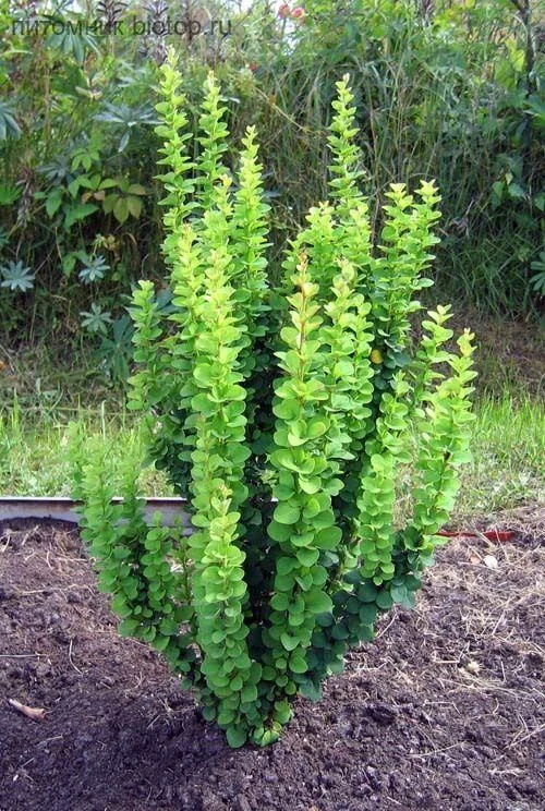 Саженцы Барбариса Тунберга Erecta (Эректа) отличаются наличием вертикальной кроны ярко-зеленого цвета. Кустарник способен вырасти до высоты в полтора метра, диаметр кроны при этом составит один метр. С возрастом саженца крона крупномера становится более раскидистой и плотной.