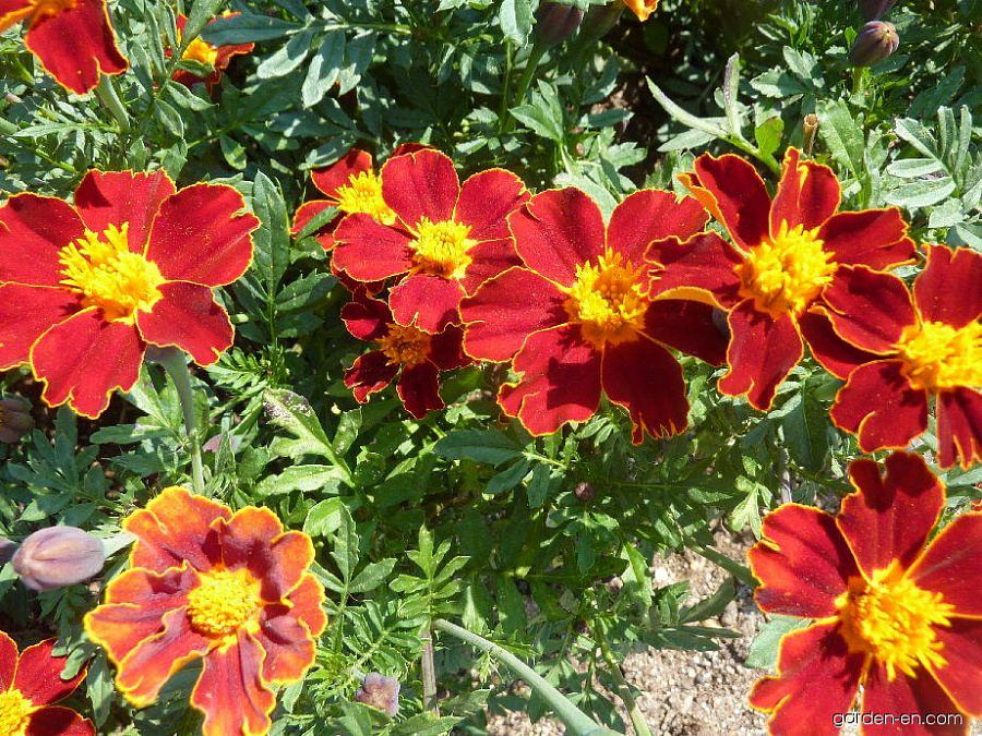 Бархатцы отклоненные диско ред - это удивительное растение с красивыми красными цветками, которые радуют глаз в течение двух месяцев. Сорт disco red поражает своей яркостью и насыщенностью цвета, привлекая внимание всех окружающих. Высота этого растения достигает 20-25 см, что делает его идеальным для групповых посадок. Листья бархатцев имеют интересную форму и придают растению особый шарм.