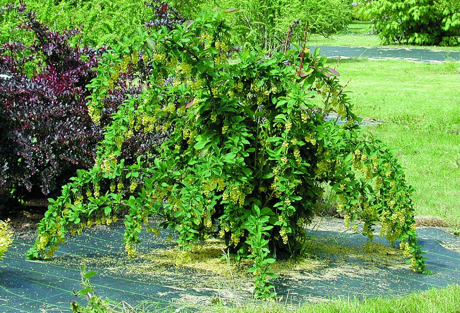Саженцы Барбариса корейский (Berberis koreana) – декоративный лиственный кустарник, устойчивый к низким температурам. Достигает 2 метров в высоту. В период цветения, который приходится на май-июнь, покрывается желтыми цветками с сильно выраженным ароматом. Размер цветущей кисти не превышает 10 сантиметров. Густую овальную крону формируют зеленые листья ланцетной формы. К осени их окраска меняется до желтой и оранжево-желтой. Стебли покрывают одиночные шипы длиной около 1 сантиметров. Ягоды мелкие, съедобные. Культура хорошо приживается на солнечных участках или в полутени, в щелочном грунте. Может использоваться в одиночных и групповых посадках.