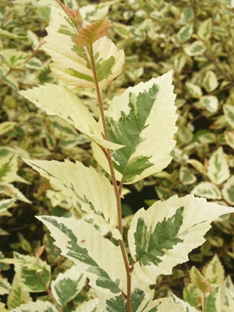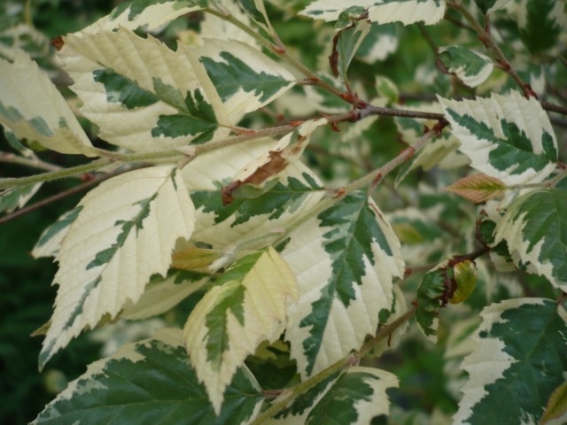 Саженцы Берёзы черной Шилох Сплаш на штамбе (Betula nigra) – новинка, выведенная в Северной Америке из классической березы, относится к карликовым видам. Ее высота не превышает 260 сантиметров. Крона округло-пирамидальная, широкая, диаметром до 200 сантиметров. Сорт уникален не только своей карликовостью, но и необычной листвой пестрого окраса: зеленый тон с белой каймой. Цветет в мае золотистыми «сережками», длиной до 15 сантиметров. Дерево лучше растет в слабокислом грунте. Предпочитает открытую солнечную местность. В тени листва приобретает стандартный окрас. Боится засухи, переносит недлительное заболачивание. Полная морозостойкость.