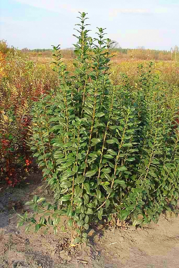 Саженцы Бирючины колоновидной (Ligustrum lucidum) – декоративный высокорослый листопадный кустарник, высотой до 200 сантиметров. Крона плотная, широкая, колоновидной, формируется по своему желанию.