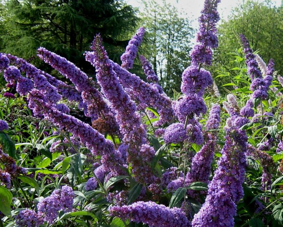 Саженцы Буддлеи Давида Вистерия Лэйн (Buddleja) – лиственный декоративный кустарник, высотой до 150 сантиметров. Его крона широкая, плотная, диаметром около 150 сантиметров, сформирована из тонких ветвей плачущего типа. Уникальность сорта в его синих, фиолетовых соцветиях, шипообразного типа, свисающих с кроны. Цветет буддлея в августе. Листва овально-ланцетной формы зеленого окраса. Кустарник неприхотлив, произрастает в любых почвах. Выдерживает длительную засуху и наличие грунтовых вод. Одинаково хорошо себя чувствует на открытой солнечной местности и в тени. Морозоустойчив. Даже, если вымерзнет, кустарник даст новые побеги от боковых корней.