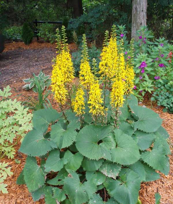 Рассада бузульника пржевальского – высокое растение, которое зацветает яркими желтыми цветками, собранными в высокие свечки соцветий. Его крупные ярко-зеленые резные листья создают фон для низкорослых цветов и эффектно выглядят сами по себе. Бузульник идеально подходит для отдаленных затененных участков сада, позволяя закрыть неприглядные участки – стройку, необустроенную часть цветника. Растение очень требовательно к влаге – его нужно высаживать в затененных и хорошо увлажненных участках, в идеале рядом с водоемом. При размножении семенами бузульник расцветет только на третий год после проращивания.