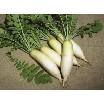 Семена дайкона "Дубинушка" дают первый всходы через 10-15 дней после посева. Это среднеспелый сорт. Корнеплоды можно собирать через 60-75 дней после появления всходов. Они имеют цилиндрическую форму, длиной 35-40 см, диаметром 5-8 см. Основная окраска белая. Мякоть очень сочная, нежная, снежно-белая, плотной консистенции. Масса корнеплода может быть от 570 до 2200 г. Урожай обладает хорошим, освежающим, сладковатым, без острого привкуса вкусом. Он пригоден для длительного хранения в зимний период. Посев семян дайкона "Дубинушка" проводят в конце апреля или во второй половине июля.