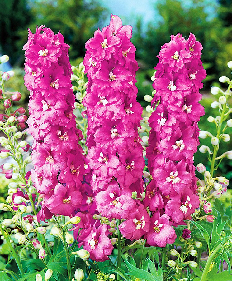Этот сорт цветет весной, летом и осенью, радуя глаз своими нежными цветами. Для выращивания дельфиниума рекомендуется выбирать место с хорошим освещением и дренированными богатыми почвами. Растение требует умеренного полива и регулярного удобрения для обильного и продолжительного цветения.