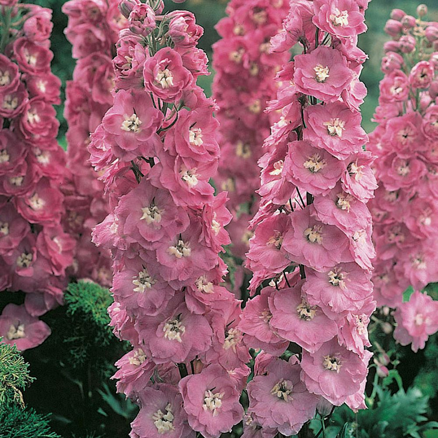 Рассада дельфиниума Астолат (Pacific Giant Astolat) вырастает в высоту около 150 см. Расцветает в июне и радует цветением около 60 дней. Цветки достаточно крупные, махровые и имеют лилово-розовый окрас. В период цветение создает высокое стройное соцветие. Преимущества дельфиниума Астолат: - крупные цветки - неприхотлив - засухоустойчиво Семена дельфиниума Астолат предпочитают посадку на богатой перегноем почве. Любит солнечные участки или полутень. Не любит перелива. Идеально подходит для посадки возле беседок, лавочек или у стен забора.
