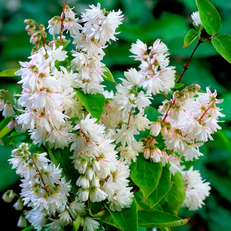 • легко адаптируется к изменениям климата. Крупномеры абсолютно не требовательны к составу почвы, но плохо переносят засухи. Поэтому посадку лучше осуществлять в тенистых участках сада, где длительно сохраняется влажность грунта. Дейция шершавая Прайд оф Рочестер цветет изящными белоснежными соцветиями, состоящими из нескольких некрупных махровых цветочков.