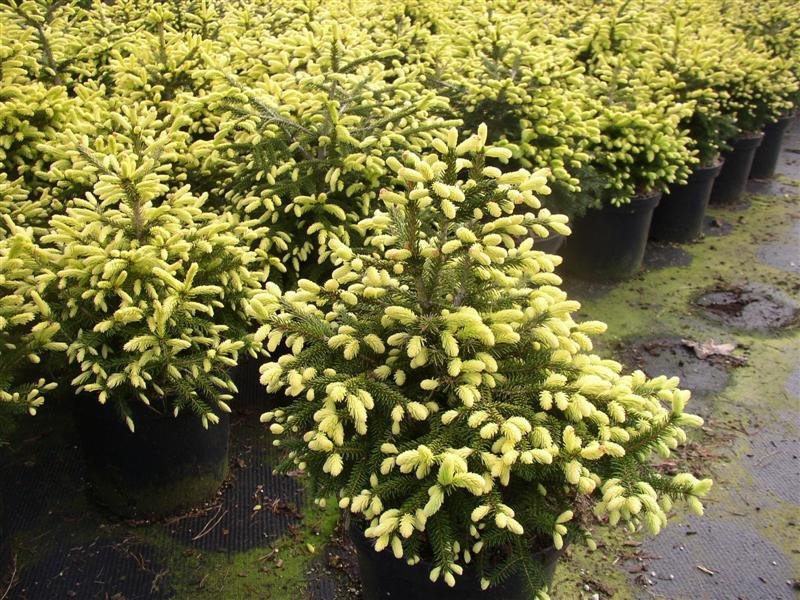 Саженцы Ели Восточной Голден Старт (Golden start Picea orientalis) используются при оформлении небольших территорий, в качестве интересного дизайнерского решения на каменистых участках и в садах, оформленных в восточном стиле. Это низкорослое дерево, которое растет очень медленно, достигая 1,5-2 метров, редкие экземпляры могут быть 3 метра. Несмотря на горизонтальное расположение ветвей, куст является вполне компактным, около 1,5 метров в диаметре. Иголки короткие и жесткие. На дереве формируется большое количество шишек, которые изначально приобретают фиолетовый оттенок и со временем темнеют до коричневого.