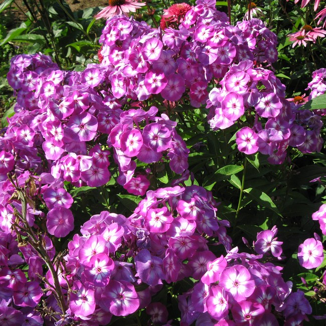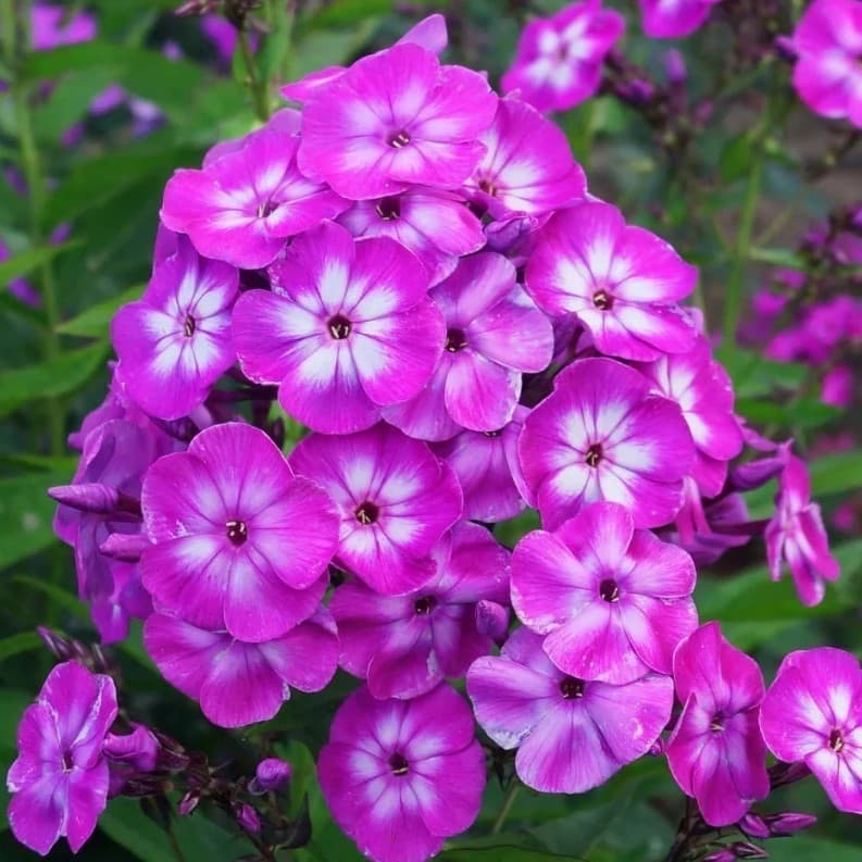 - крупные в диаметре цветки. Цвет у лепестков насыщенный пурпурно-фиолетовый. Центр каждого цветочка украшает большая белая звезда. Семена могут не сохранять особенности гибридных сортов, поэтому размножать лучше черенкованием или делением куста. Уход за флоксом метельчатым Лаура под силу даже начинающему цветоводу.