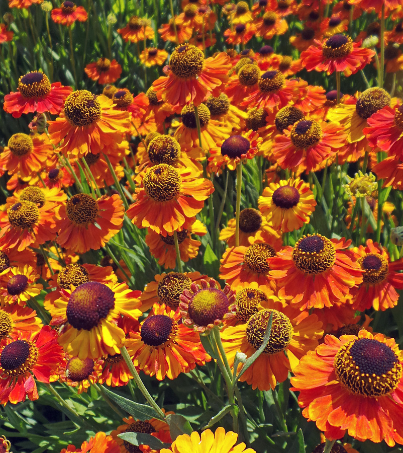 Семена гелениума осеннего Осенняя серенада — потрясающая смесь, которая наполнит ваш сад яркими красно-желтыми красками. Цветы на стебельках высотой до 120 сантиметров можно срезать для составления роскошных букетов. Этот сорт прекрасно сочетается с другими декоративными растениями. Цветы долго сохраняют эффектный вид и могут цвести до наступления осенних заморозков. Чтобы растения формировались крепкими и здоровыми, семена гелениума осеннего Осенняя серенада рекомендовано высевать на зиму. Летом кусты нуждаются в регулярном поливе, особенно в период засухи. Растение следует пересаживать раз в 3–4 года, а каждой весной подкармливать минеральными удобрениями.