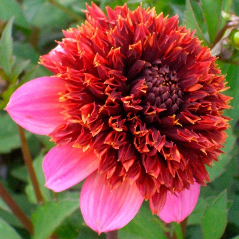 Окраска цветка : пурпурно-бордовым центром и "юбкой" из ярко-розовых лепестков