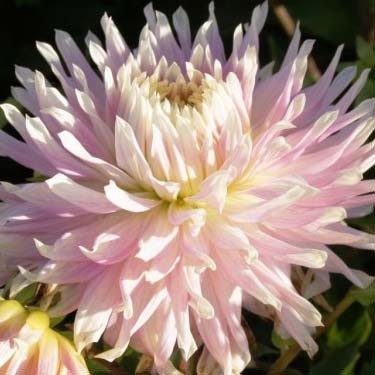 Клубни георгины махровой Киев (Dáhlia variabilis Kiev) позволят вырастить в саду красивый куст, с июля по сентябрь, покрытый нежными светлыми цветами. Основной тон лепестков белый, ближе к основанию они приобретают фиолетовый оттенок. Центр цветка имеет желтоватый оттенок. Лепестки возле основания заостренные, свернутые трубочкой. Куст вырастает от 60 до 100 сантиметров. В саду их высаживают по одному или в миксбордерах. Хорошо они смотрятся рядом с другими цветами, которые имеют цветки фиолетовой окраски. Кусты размещают на расстоянии 60 сантиметров. Их подвязывают к опоре.