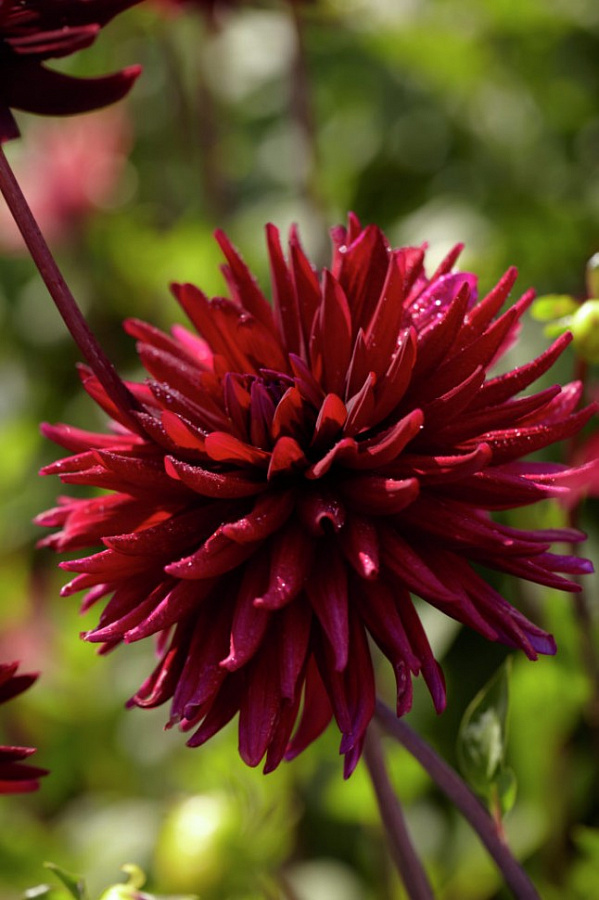 Георгина полукактусовая чат нуар - это великолепное растение, которое поразит вас своей красотой и изысканностью. Ее темно-бордовые цветы диаметром до 15 см будут радовать глаз в течение всего лета, цветя в июне, июле, августе и сентябре. Это растение достигает высоты до 100 см, идеально подходит для посадки как в группах, так и в одиночных посадках на газонах или в миксбордерах.