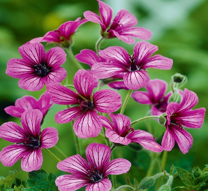 Рассада герани гибридной Sue Crug (Аистов клюв Geranium hybrid) высаживается ранней весной или в начале лета в питательную, влажную почву. Место для цветника выбирают солнечное или частично освещенное. Ценится сорт за то, что формирует компактные плотные кусты с эффектными ажурными листьями, которые сохраняют свою декоративность до самой зимы. Но все же наибольшую декоративность герань гибридная Sue Crug приобретает с июня до августа, когда распускаются красивые цветочки. Бутончики диаметром 3-5 см отличаются нежно-розовым окрасом и красивой формой. Высота растение обычно не превышает 40 см.