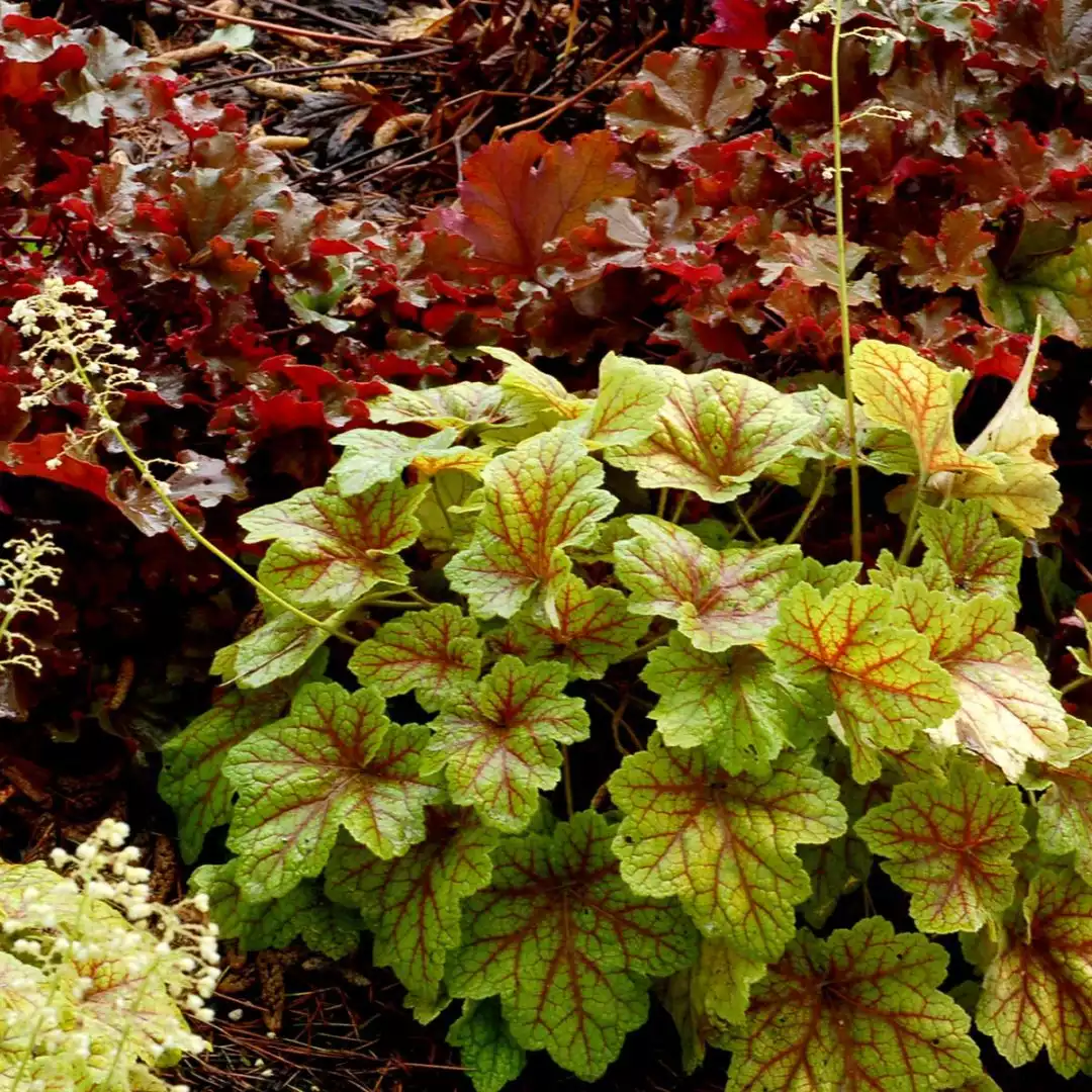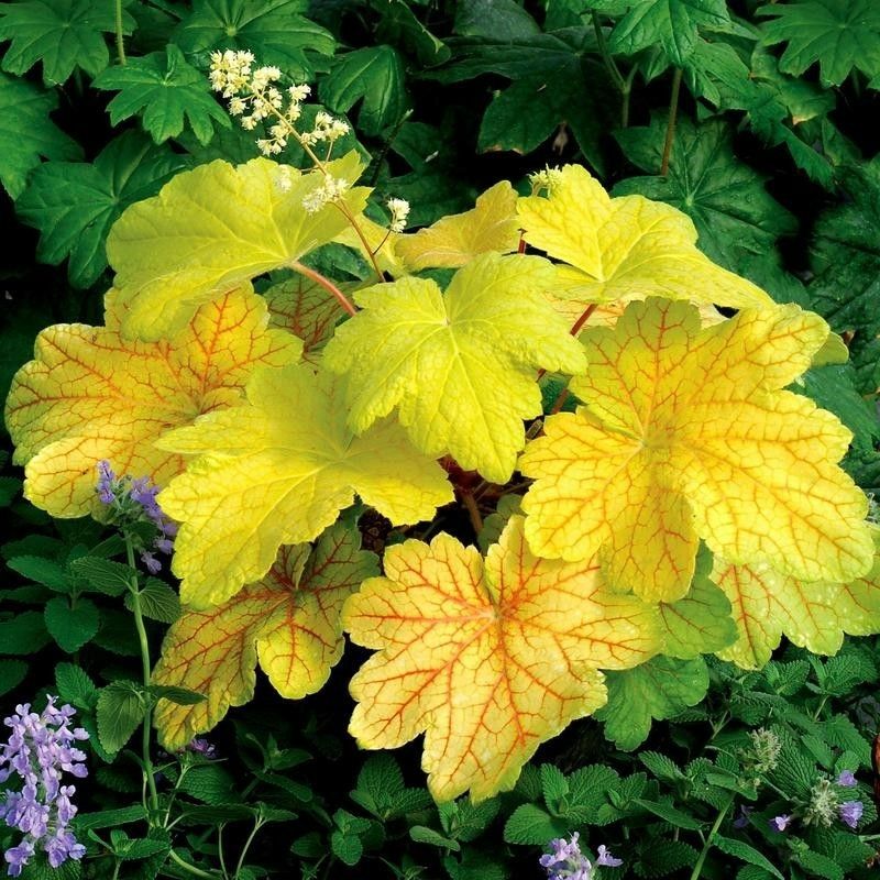 Рассада гейхеры Электрик Лайм (Electric Lime) идеально подходит для дополнения смешанных посадок, украшения искусственных водоемов и каменных горок. В начале сезона листья имеют нежную лаймовую окраску, а к осени на поверхности проступают красные прожилки, повышая декоративность растения. В середине лета появляются цветоносы с белыми соцветиями-метелками. Неприхотливая рассада гейхеры Электрик Лайм (Electric Lime) отлично переносит жару и влажность. Однако не следует слишком часто поливать растение – застойная вода может стать причиной появления серой гнили, ржавчины и мучнистой росы.