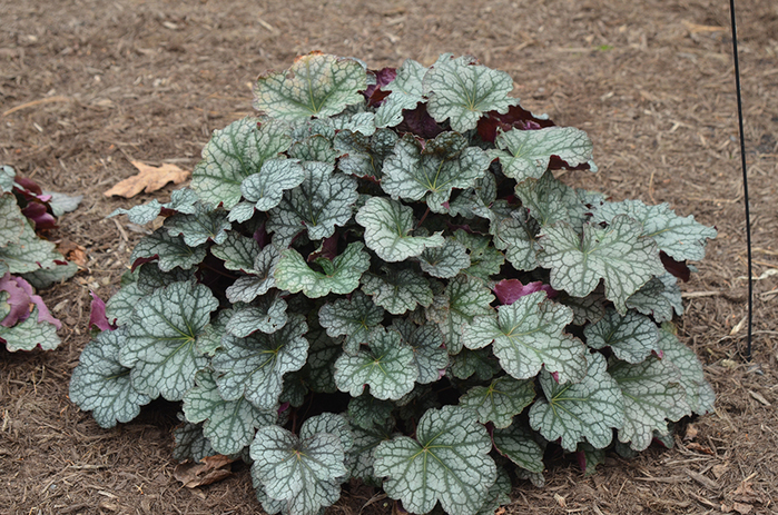 Летняя окраска листвы : Листья среднего размера, темно бордового цвета с очень красивым, серебристым рисунком на внешней поверхности. Нижняя часть листа полностью красно-бордовая