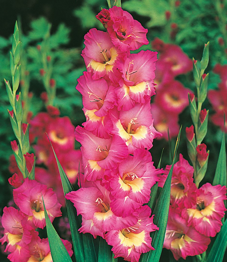Луковицы гладиолуса гибридного Windsong порадуют неприхотливостью, простым уходом и красивыми цветами. Их лепестки имеют нежно-малиновую окраску с кремовым пятном у горловины. Сорт широко применяется при оформлении загородных участков, балконов и придомовых территорий. Колосовидные соцветия отлично смотрятся в срезке. Луковицы гладиолуса гибридного Windsong предпочитают хорошее освещение, но, чтобы нежная зелень не пострадала от палящих лучей, растение следует размещать в легкой полутени. Уход за кустами заключается в регулярных поливах, рыхлении земли, внесении минеральных удобрений и удалении сорняков.