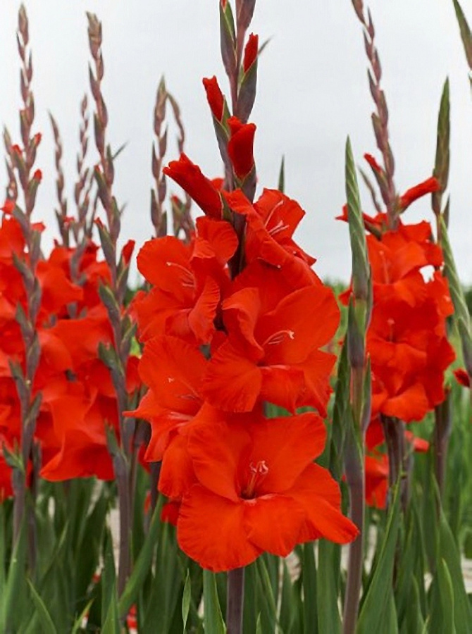 Гладиолус крупноцветковый "Дайдор де Пан" - это великолепное растение с красно-оранжевыми цветками, которое поразит ваш взгляд своей красотой. С его высотой до 110 см, этот гладиолус станет настоящим украшением вашего сада или огорода. Листья зеленого цвета создадут яркий контраст с яркими цветами, придавая растению особый шарм.