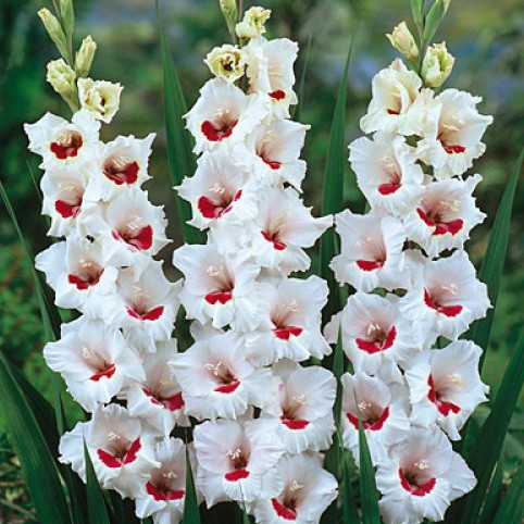 Гладиолус крупноцветковый Фьёрентина - это великолепное растение, которое поразит вас своей красотой и изяществом. Его стебель достигает высоты от 80 до 110 см, а цветки белого цвета привлекают внимание своей изысканной окраской. Листья гладиолуса имеют форму, напоминающую меч, что добавляет этому растению особый шарм.