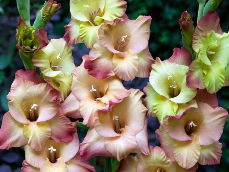 Гладиолус крупноцветковый шуте - это великолепное растение, которое поразит вас своей красотой и изысканностью. Его стебель прочный и прямой, достигает внушительной высоты, а цветки кремово-жёлтого цвета с розовыми кончиками привлекают взгляды и создают неповторимую атмосферу в вашем саду. Листья гладиолуса имеют форму, напоминающую меч, что добавляет этому растению загадочности и утонченности.