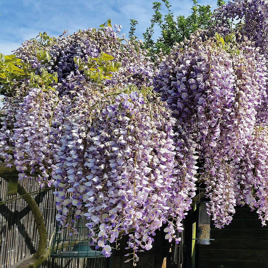 Саженцы глицинии китайской Глициния китайская Prolific пользуются популярностью у садоводов и дизайнеров садовых ландшафтов благодаря невероятной декоративности. Это растение представляет собой дерево высотой около 6 метров, ветви которых заканчиваются тонкими лианами. В середине мая и в конце лета на ветвях-лианах распускаются нежные голубовато-фиолетовые цветы. Глициния китайская Prolific станет настоящим украшением сада. Его можно разместить в зоне отдыха, возле водоема или около крыльца. Ухода растение не требует, но нуждается в опоре, защите от сильного ветра и хорошем солнечном освещении.