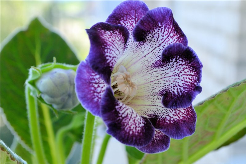 Глоксиния тигринум блу - это великолепное растение с голубыми цветками, украшенными белым крапом. Его зеленая листва создает яркий контраст и придает растению особый шарм. Высота этой красоты достигает 25-30 см, что делает ее идеальным выбором для газонов, групповых и одиночных посадок. Глоксиния тигринум блу предпочитает солнечные и полутенистые места, а также дренированные богатые почвы.