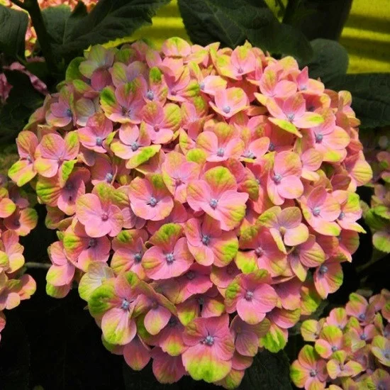 Саженцы гортензии крупнолистной Ксиан (Hydrangea macrophylla Xian) удивят садоводов необычной расцветкой в период цветения. Размеры куста средние – в высоту около 100 сантиметров, в ширину – до 110 сантиметров. Побеги прочные, толстые, листва насыщенно-зеленая. Цветение происходит в июле-августе. Цветки изначально нежно-салатовые со светлой сиреневой серединкой, в процессе цветения начинают розоветь с центра. К окончанию периода цветения окраска цветков – бело-зеленая. Сорт предпочитает солнечные участки, плодородные почвы и регулярный полив. На зимний период необходимо укрытие.