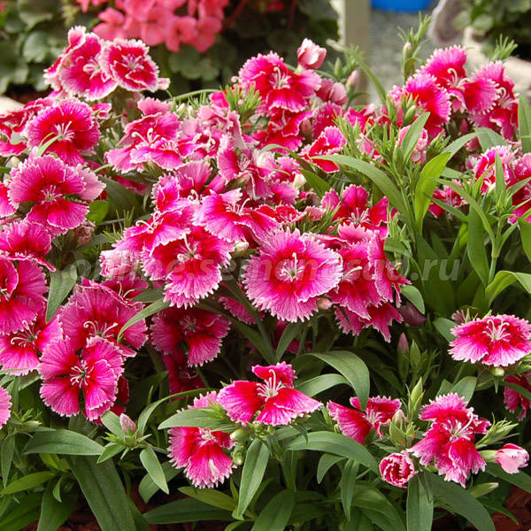 Гвоздика Chiba Cherry Picotee - это великолепное растение с нежными розовыми цветками, которые радуют глаз своей красотой. Этот сорт гвоздики отличается высотой до 25 см и размером цветка от 3 до 5 см. Он предпочитает солнечные и полутенистые места для посадки, а также дренированные богатые почвы. Гвоздика Chiba Cherry Picotee прекрасно подходит для групповых посадок, создавая удивительные композиции в саду.