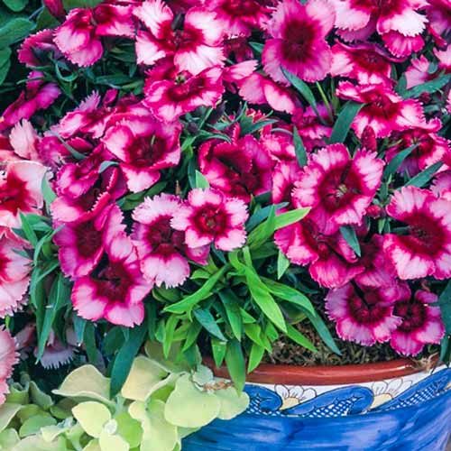 Гвоздика сорта Super Parfait Raspberry - это великолепное растение, которое порадует вас своими розово-бордовыми цветками в течение всего лета. С его высотой до 20 см, это идеальный выбор для газонов, групповых или одиночных посадок. Листья зеленые как весной, так и летом, создавая яркий контраст с яркими цветами.
