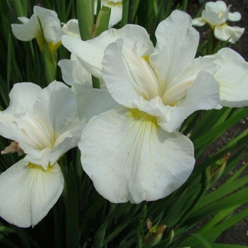 Рассада ириса сибирского Gulls Wing (Галл'з Винг) – это многолетний сорт с большими кружевными цветами. Листья короткие, линейные, зеленого цвета. Длина листьев достигает 50-80 см, а ширина до 4 мм. Цветы с лепестками белого цвета с желтым основанием. Бутон в диаметре равен 12 см. Пахнет ирис сладостью. Цветет в июне-августе месяце. Особенности посадки семян: