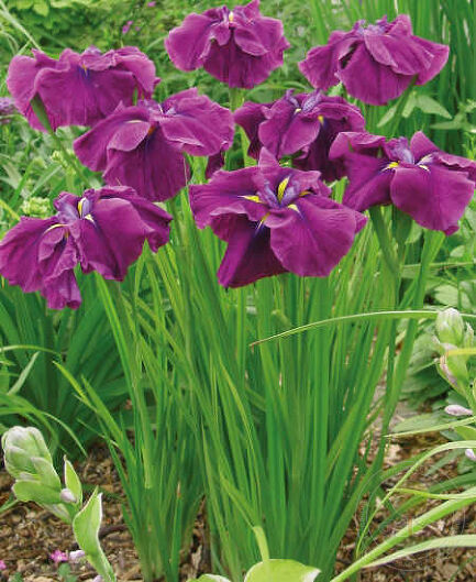 Ирис японский "Гуд Омен" - это великолепное растение, которое поразит вас своей красотой и изяществом. Его фиолетовые цветы с желтой серединкой и темными прожилками создадут неповторимый акцент в вашем саду. Листья ириса имеют уникальную форму, что делает его еще более привлекательным.
