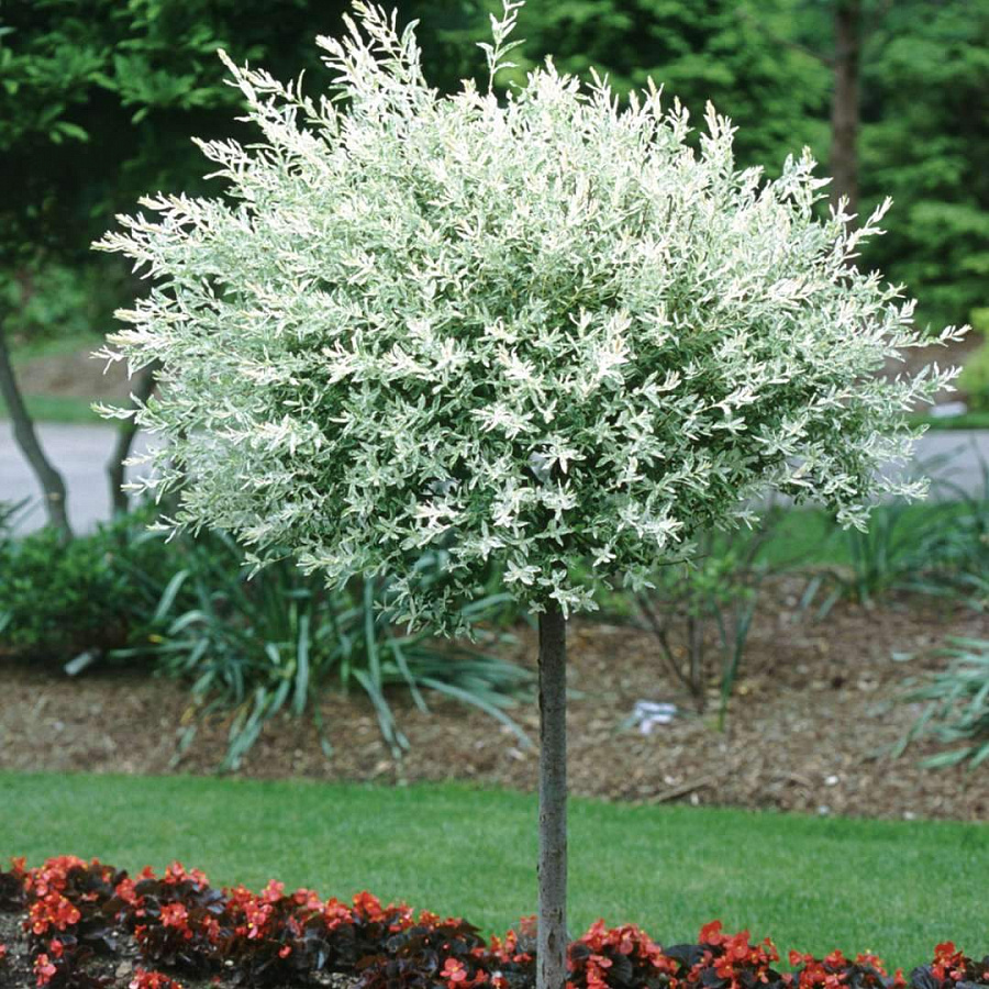 Саженцы ивы Хакуро Нишики (Hakuro-nishiki) особенно шикарно смотрятся среди темных видов растений. Это деревце высотой не более двух метров имеет шарообразную крону. Листочки необыкновенно нежные с заостренными кончиками, трехцветные бело - розово-зеленые. Цветет сережками в первой половине весны. Эта японская красавица ива Хакуро Нишики очень быстро разрастается до трех метров в диаметре, это нужно учитывать при высаживании относительно других растений. Дерево хорошо относится к: