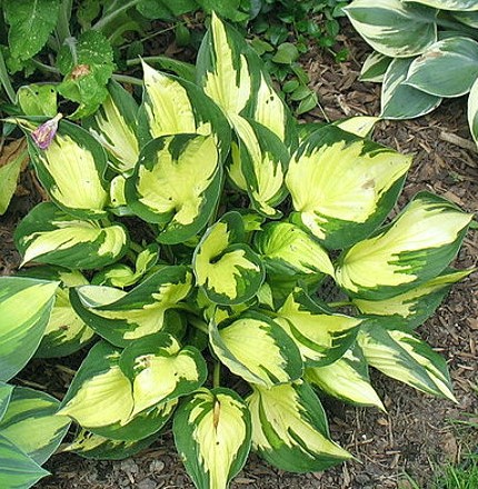 Летняя окраска листвы : Кремово-желтый центр листа контрастирует с темно-зеленым краем.