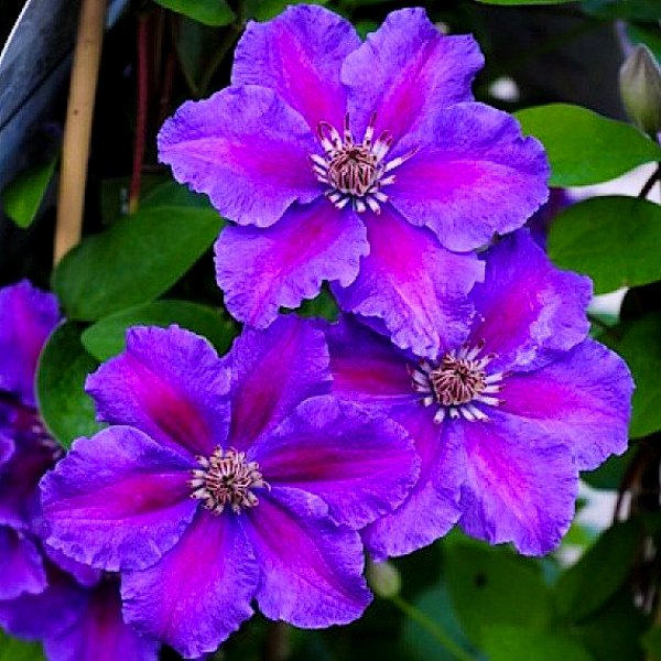 Саженцы клематиса гибридного Ашва (Ashva) предпочитают защищенные участки сада, находящиеся в полутени. Не требовательны к типу и составу почвы. Цветки округлой формы с изогнутыми краями, диаметром 5-8 см. Окраска цветка фиолетовая с пурпурной полоской, центр темнее. Цветет обильно с июня по сентябрь на побегах текущего года. Клематис гибридный Ашва (Ashva) растет сдержанно, достигая высоты 150-200 см. Требуется опора, за которую растение будет цепляться листовыми черешками. Подходит для выращивания у беседок, пергол и других вертикальных элементов сада.