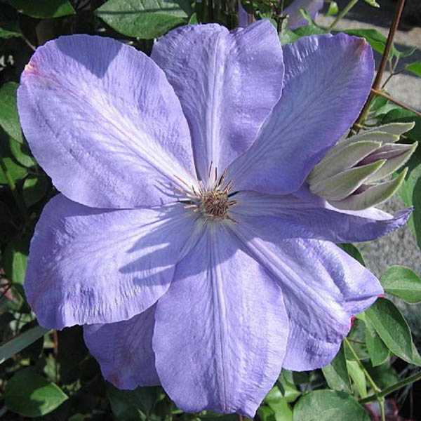 Саженцы крупноцветкового клематиса Миссис Холмонделей (Clematis Mrs Cholmondeley) популярны благодаря продолжительному обильному цветению. Лиана длиной около 3 м. Диаметр цветков до 20 см. Форма простая, из 6 чашелистиков. Окраска лавандово-голубая. Тычинки светло-коричневые. Цветение длится с июля по сентябрь.  Клематис хорошо развивается на солнце и в полутени, но требует укрытия от палящих полуденных лучей. Нуждается в слабой обрезке. При сильном укорачивании цветение происходит на месяц позже. В ландшафтном дизайне лиану комбинируют с темным фоном, желтоцветущими растениями.