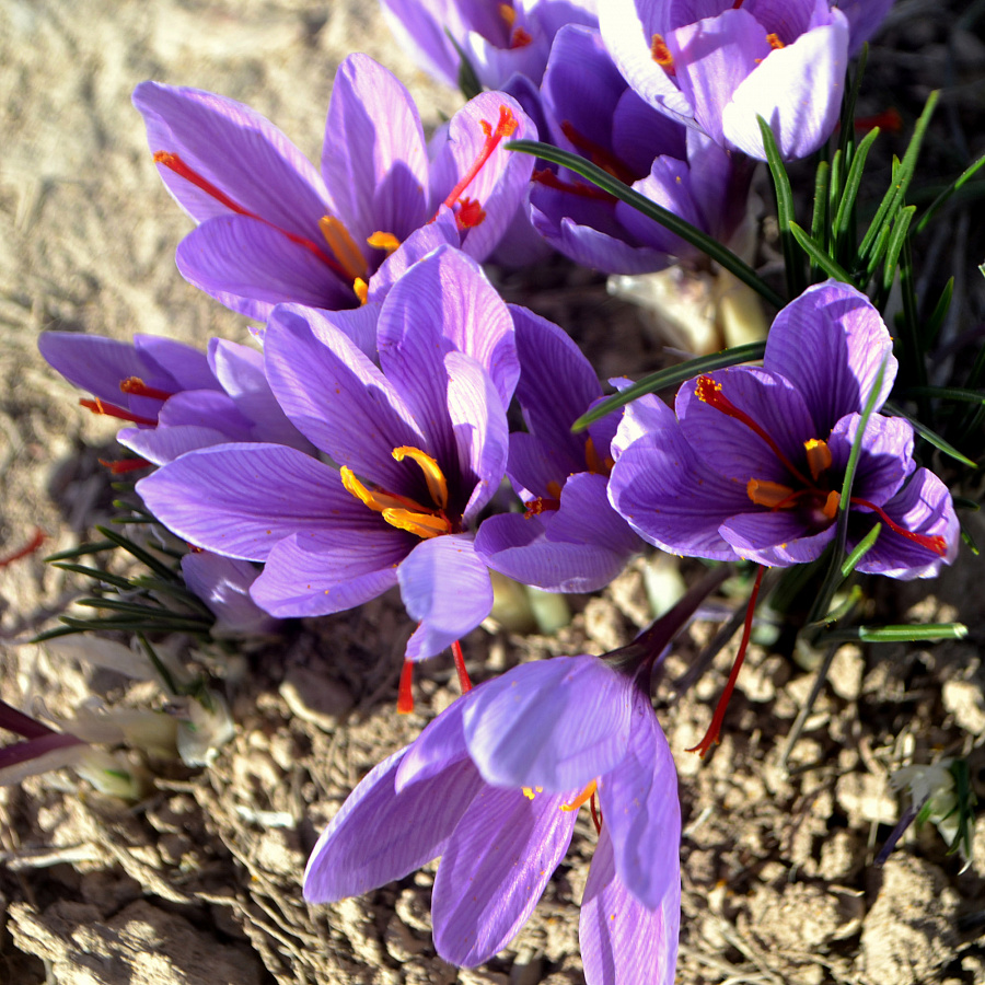 Луковицы крокуса ботанического Сативус (Sativus) – прелестный многолетник с лиловыми цветами и пурпурными рыльцами, из которых добывают драгоценный шафран. Цветение начинается в сентябре – ноябре. В зависимости от климатической зоны. Бокаловидные бутоны распускаются в нежные цветки с желтыми тычинками. Чуть позже прорастает тонкая темно-зеленая листва. Луковицы хорошо зимуют, но в особо холодных регионах крокус ботанический Сативус лучше высаживать в переносные горшки.