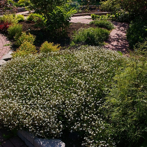 Саженцы Лапчатки трёхзубчатой Нуук (Nuuk) – это олицетворение чувственной нежности белоснежных облаков. Вечнозелёный кустарник станет центром внимания на вашем садовом участке. Густые кроны разрастаются в ширину на 50 см, а в высоту около всего лишь на 20 см. Крупномер устойчив к зною летом и холоду зимой. Начинает цвести сорт Нуук в июне, а заканчивает к сентябрю. Белые цветки вырастают до 1 см в диаметре. Осенью кустарник облачается в насыщенные бронзовые и бордовые тона.