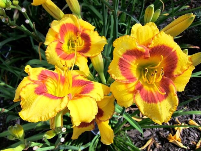 Окраска цветка : Золотисто-желтая с красным глазком, салатовым горлом