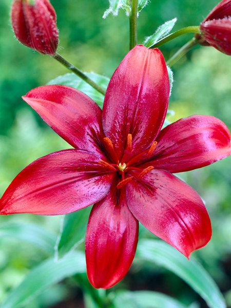 Саженцы и рассада декоративной Лилии азиатской Блэк Джэк (Lilium asiatic Black Jack) вырастают до 70 см в высоту. Цветок очень редкой окраски — темно-красный ровный цвет без переходов к основаниям лепестков, без крапа, с точным повторением цвета в тычинках. Лепестки глянцевые, по 6 в каждом цветке, две трехлепестковые чашечки. Начинает цвести в конце июня. Сорт отличается морозостойкостью, не требует укрытия на зиму, но почву стоит мульчировать торфом или сухими листьями. На одном месте живет 3-4 года. Идеален для букетов в качестве основного элемента, в миксбордерах и групповых посадках.