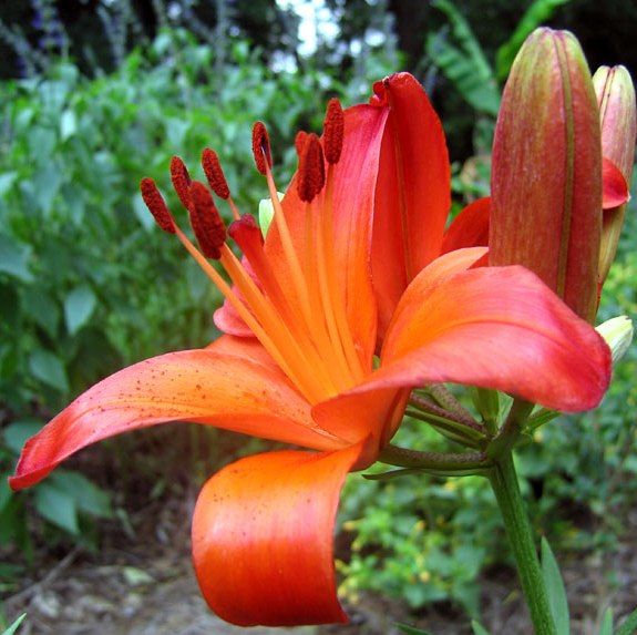 • Окраска цветка : от оранжевых оснований лепестков до темно-бордовых пыльников