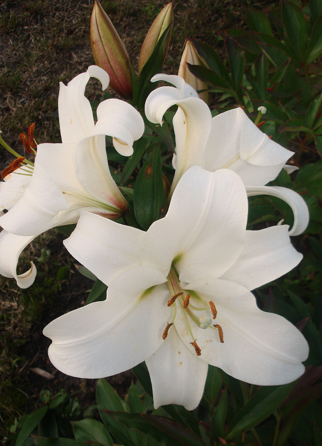 Саженцы и рассада лилии ло-гибрид Вайт Триумф (Lilium LO-hybrid White Triumph) наполнят цветник настоящей восточной экзотикой. Высокие кусты, с темно-зеленой листвой очень выгодно подчеркивают белоснежные, практически восковые цветы с зеленоватой серединкой. Края лепестков сдержанно загнуты к стеблю. Аромат вызовет настоящее наслаждение у любителей лилейных.