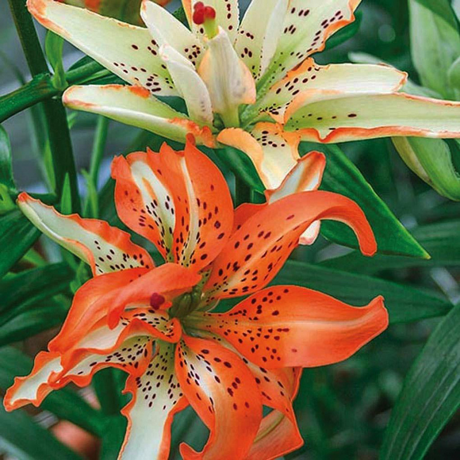 Окраска цветка : цветы ярко-оранжевые с темными вкраплениями, со временем меняются на белые с салатовым центром, крап остается, цветение длительное
