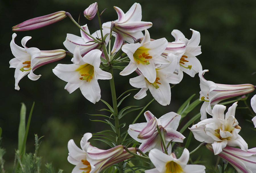 Луковицы лилии Regale растут на увлажненной, богатой органикой, хорошо дренированной почве. Культура светолюбивая, для обильного цветения нуждается в солнечных лучах. В тени растет плохо. Цветки большие, до 20-25 см в диаметре, направлены в стороны и окрашены в розово-желтый цвет, серединка желтая. Такие бутоны эффектно выделяются на фоне ярко-зеленой листвы. Во время цветения от лилии Regale исходит приятный, характерный аромат, в котором улавливаются ноты жасмина. Высота обычно варьируется от 90 до 120-130 см.