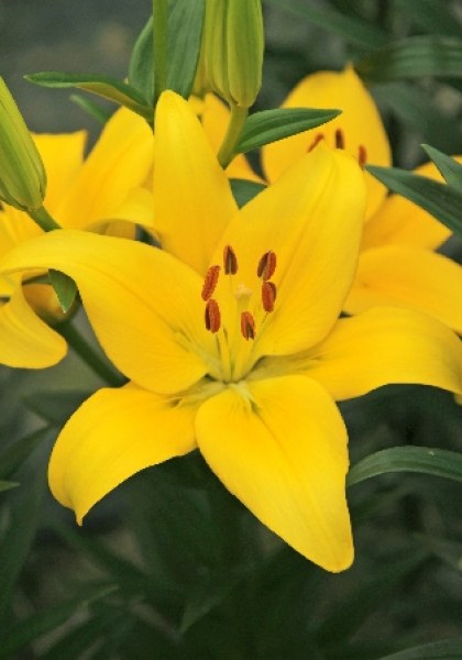 Луковицы лилии обыкновенной Йеллоу Каунти (Lilium, Yellow County) высаживают в открытый плодородный, взрыхленный грунт на солнечных участках. Высота взрослого растения достигает 90 сантиметров. Примерно через 3 месяца после посадки, в июне распускается ярко-желтыми цветами с бордово-коричневыми тычинками. Лепестки удлиненные, до 15 сантиметров в диаметре, окрас равномерный, насыщенный. Цветение продолжается до конца лета. Листва мясистая, темно-зеленая. Сорт подходит для выращивания на клумбах и в контейнерах. Желтые лилии украшают сады, миксбордеры, газоны, альпинарии.