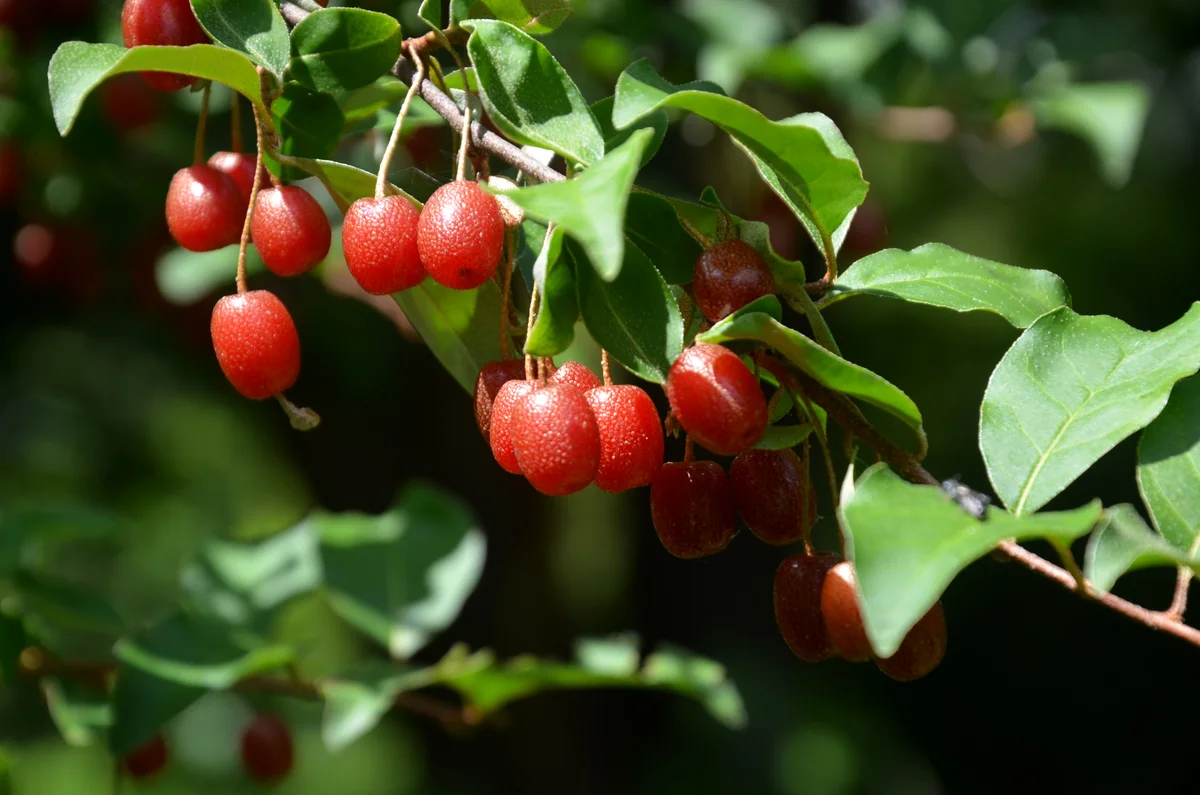 Саженцы лоха Гуми – довольно необычный, но очень удачный выбор для вашего сада. Многие недооценивают эту культуру, а зря, ведь плоды кустарника отличаются прекрасными вкусовыми качествами, а сам он гармонично дополнит общую картину на участке. Крупномеры Гуми вырастают до 1,5 метров в высоту. Плоды имеют такие характеристики: