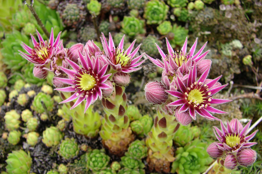 Молодило горное - это удивительное растение с темно-зелеными листьями, которые образуют плотные розетки. Его бледно-желтые и розовые цветы расцветают во второй, третий и четвертый месяцы. Высота этого растения может достигать 20-30 см, а диаметр - до 15 см. Молодило горное предпочитает песчаные почвы и хорошо переносит морозы.