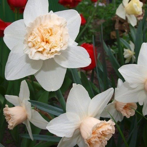 Луковицы нарциссов Рози Клоуд (Rosy Cloud) отличное для ваших участков приобретение. Они помогут вам создать красивый и яркий пейзаж в период с апреля по май. Нарцисс этот цветет шикарным цветком нежного розового цвета, полным и махровым, с коронкой того же цвета. Диаметр его 5-7 сантиметров. При открытии цветет почти три недели, источая тонкий нежный аромат весны. Хорош цветок как в срезке, так и на клумбе самостоятельными посадками или в комбинациях с сиреневыми гиацинтами, тюльпанами.