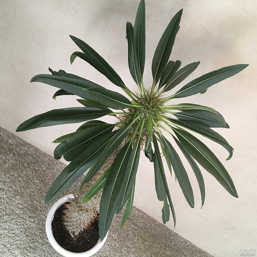 Пахиподиум Ламера - это удивительное растение с необычным стволом, который напоминает форму бутылки. Его высота может достигать до 100 см, что делает его прекрасным акцентом в саду или на террасе. Листья пахиподиума Ламера имеют зеленую окраску и создают уютную атмосферу вокруг себя.